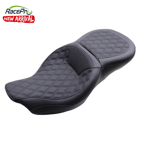 RACEPRO เบาะหนัง PU สีดำสำหรับรถจักรยานยนต์,เบาะนั่งด้านหลัง2ชั้นดีไซน์ใหม่สำหรับ Harley Davidson Touring